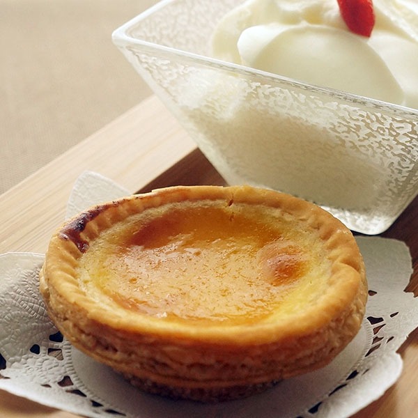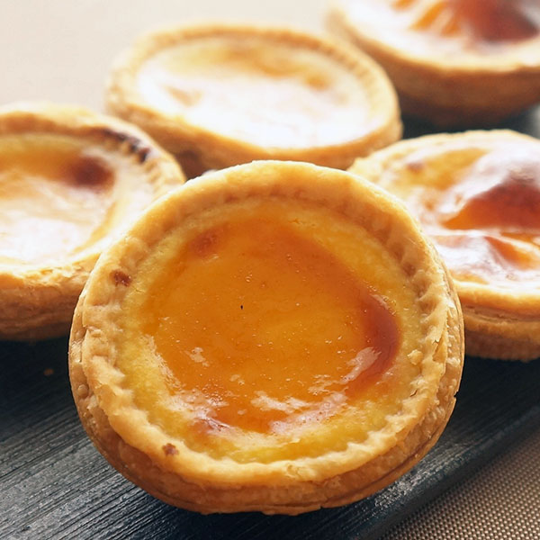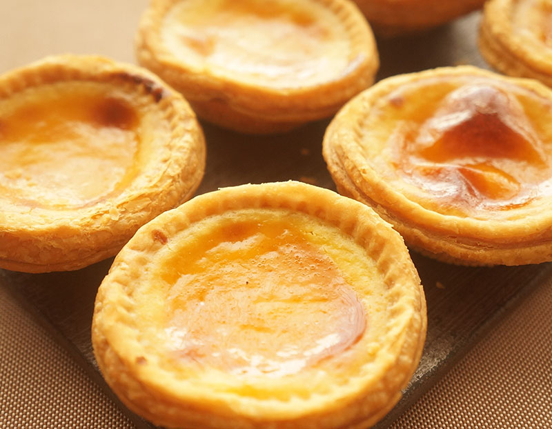 エッグタルトには2種類のタイプがあるのをご存じでしょうか。ひとつはタルト生地で、クリームの表面に焦げ目がないイギリス流香港タイプ。もう一つがパイ生地でクリームに焼き目のついた ポルトガル流マカオタイプです。