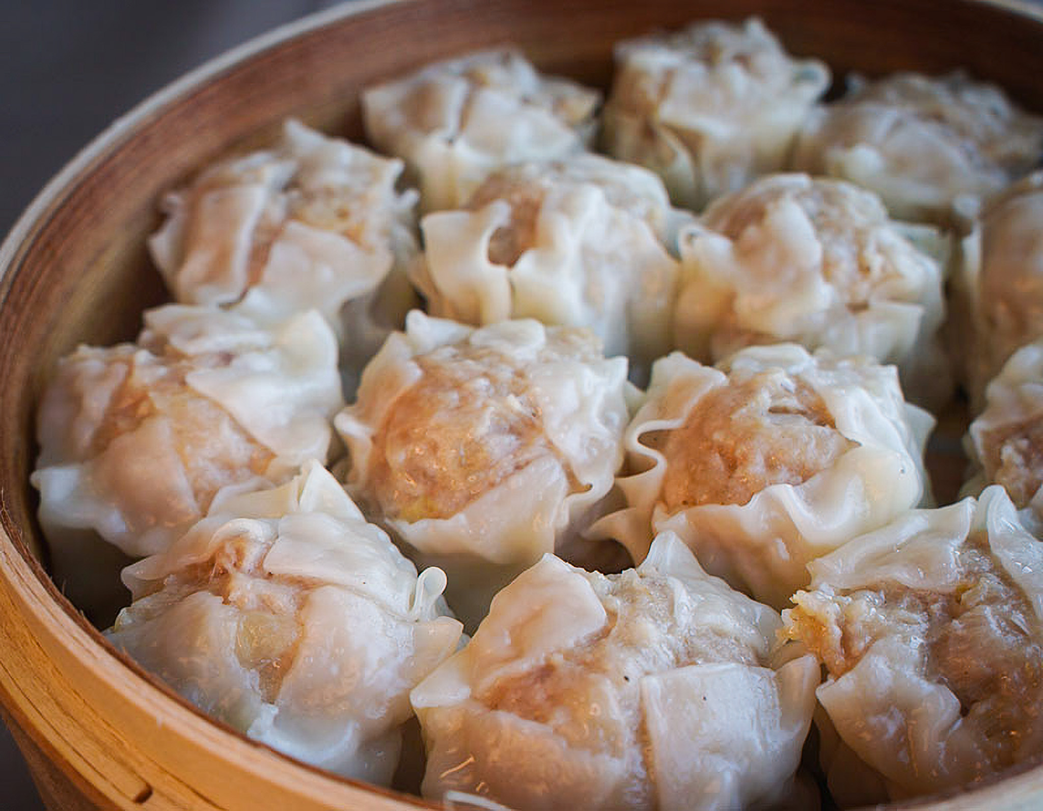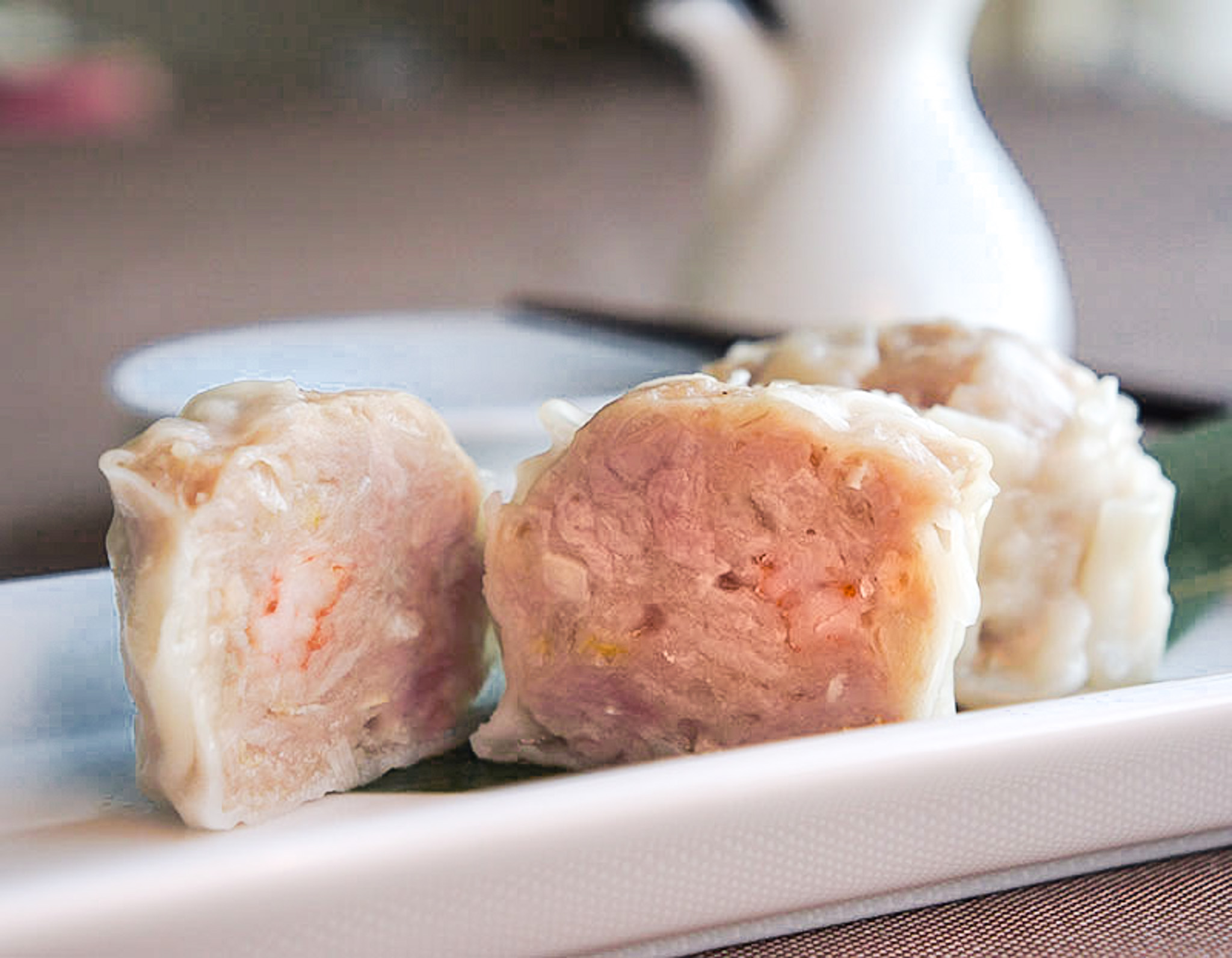 この焼売の大切な隠し味は海老。海老の香りと濃厚な旨み、ぷりぷりとした食感を加えることで、肉だけの焼売よりも味に奥行きを持たせられるという考えのもとに使用しています。隠し味と言うにはかなり主張が強い量の海老を使っているのが最大の特徴です。